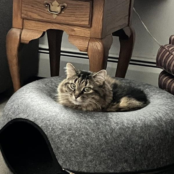 Start slowly and keep the space low-pressure. Place the cat donut bed in a quiet, familiar area and add your cat's scent (e.g. a blanket or worn T-shirt). Use toys, treats, and playtime to draw them in, and let them explore at their own pace — this process are often quick, but can take up to a week or two.